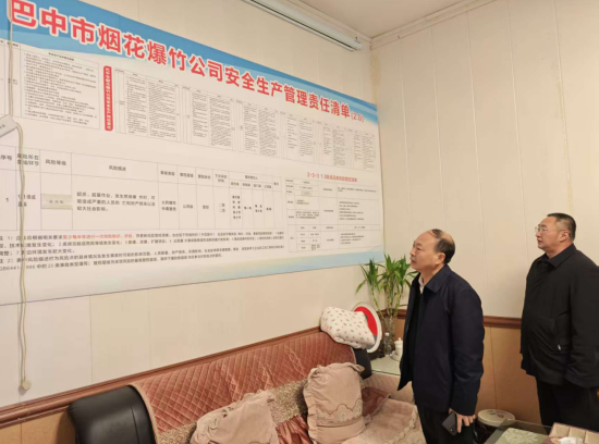 在市煙花爆竹公司,廖爵祿深入倉儲庫房、展示中心,仔細核查消防設施配備、安全管理制度落實、從業(yè)人員安全培訓等情況。他強調,煙花爆竹行業(yè)安全風險高、責任重大,公司要始終把安全生產(chǎn)放在首位,切實強化安全意識,嚴格落實主體責任,常態(tài)化開展安全隱患排查整治,完善應急處置預案,堅決落實好“工作+安全”要求,守住安全生產(chǎn)底線,確保行業(yè)安全平穩(wěn)運行。